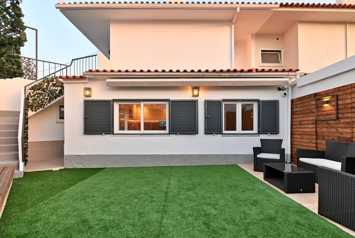 O Pátio nas traseiras é um espaço amplo e agradável, propício ao convívio com família e amigos, com privacidade garantida pelo toldo elétrico para usufruir tanto nos dias de mais calor como de noite.